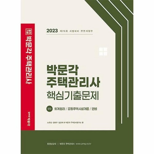 • 2023 박문각 주택관리사 기출문제집 (박문각): 오랜 전통의 박문각에서 출간한 기출문제집입니다. 철저한 분석을 통해 엄선된 문제들과 함께, 중요 포인트를 명확히 짚어주는 해설이 강점입니다. 오답 분석을 위한 별도의 공간을 제공하거나, 중요 이론을 추가로 정리해주는 등 수험생의 학습 편의를 고려한 구성이 돋보입니다. 탄탄한 기본기를 다지고 싶은 분들께 권해드립니다.